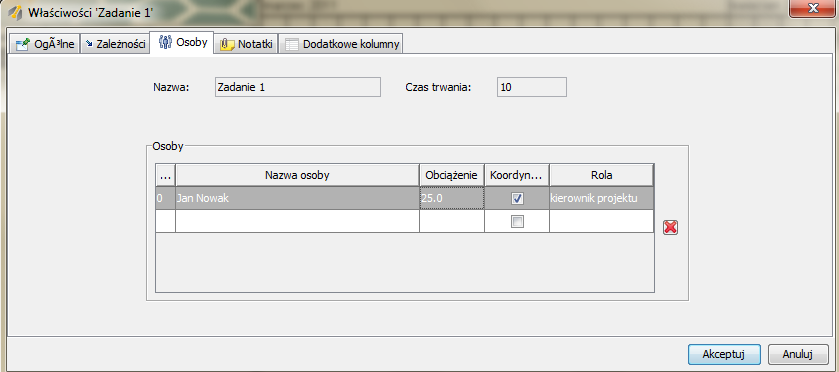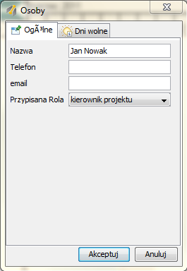 - Dodawanie osoby do listy zasobów w Gantt Project