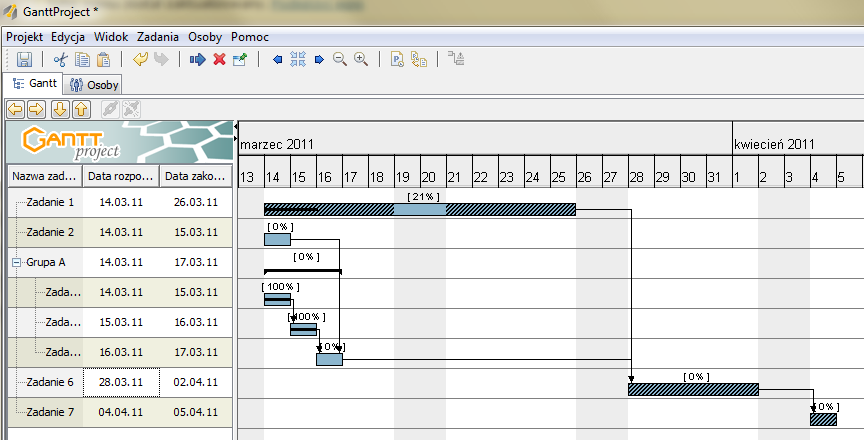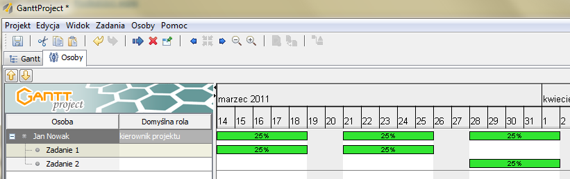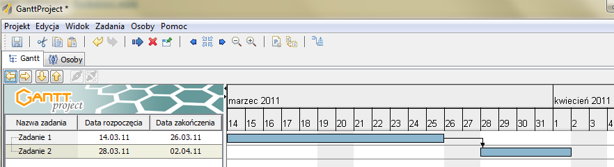 - Kilku zadaniowy wykres Gantta w Gantt Project